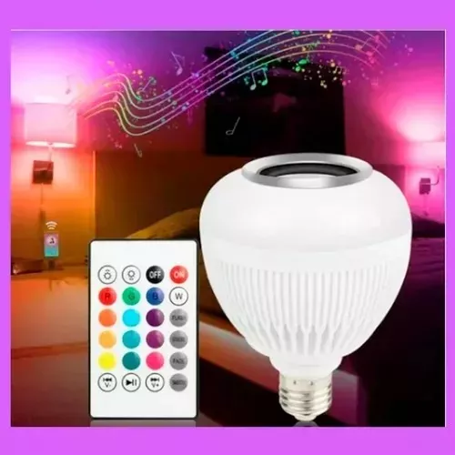 Bombillo Bluetooth Diferentes Colores ofrece un sonido natural, con una gran claridad y precisión, que se dispersa de manera uniforme. Un parlante que asegura potencia y calidad por igual en la reproducción de contenidos multimedia.Un bombillo parlante Bluetooth con luz RGB y música es un dispositivo innovador que combina las funciones de iluminación y reproducción de audio en un solo producto. Este bombillo se conecta de manera inalámbrica a través de Bluetooth a dispositivos compatibles como teléfonos inteligentes o tablets, permitiendo reproducir música directamente desde estos dispositivos.CARACTERISTICAS- Conectividad Bluetooth: Permite la reproducción de música desde dispositivos compatibles.- Control remoto: Incluye un control para gestionar las funciones de luz y música.- Luces LED RGB: Ofrece una amplia gama de colores y efectos de iluminación.- Aplicación móvil: Algunos modelos permiten controlar las funciones a través de una app en el smartphone.- Altavoz integrado: Reproduce audio con calidad suficiente para ambientes pequeños a medianos.- Ajuste de brillo: Permite ajustar la intensidad de la luz según las preferencias del usuario.- Modos de iluminación: Puede tener modos preestablecidos como parpadeo, transiciones suaves, etc.QUE INCLUYE LA COMPRAX1 Bombilla Musica